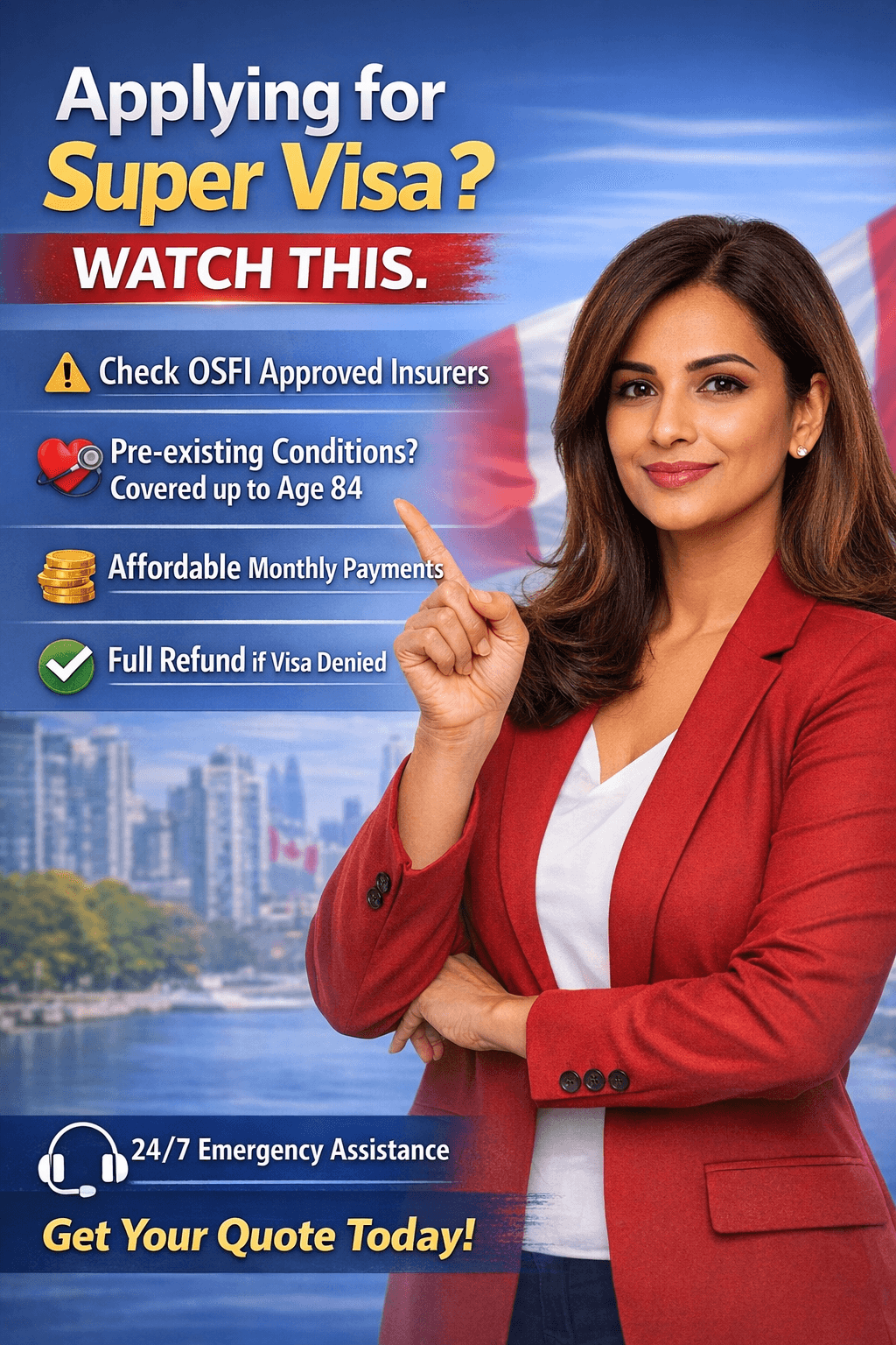 I created a clean and professional portrait-style thumbnail designed to maximize viewer attention and trust for a Super Visa insurance video. The goal was to clearly communicate key benefits within seconds while maintaining a strong corporate and trustworthy visual identity.